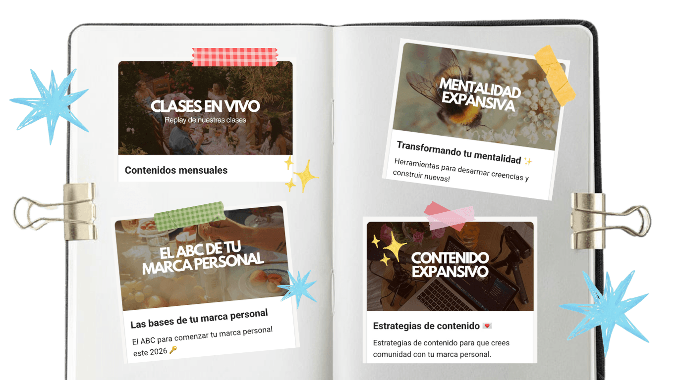 Es una membresía mensual de marca personal donde integramos la creatividad a las estrategias de marketing y comunicación que van a expandir tu negocio.